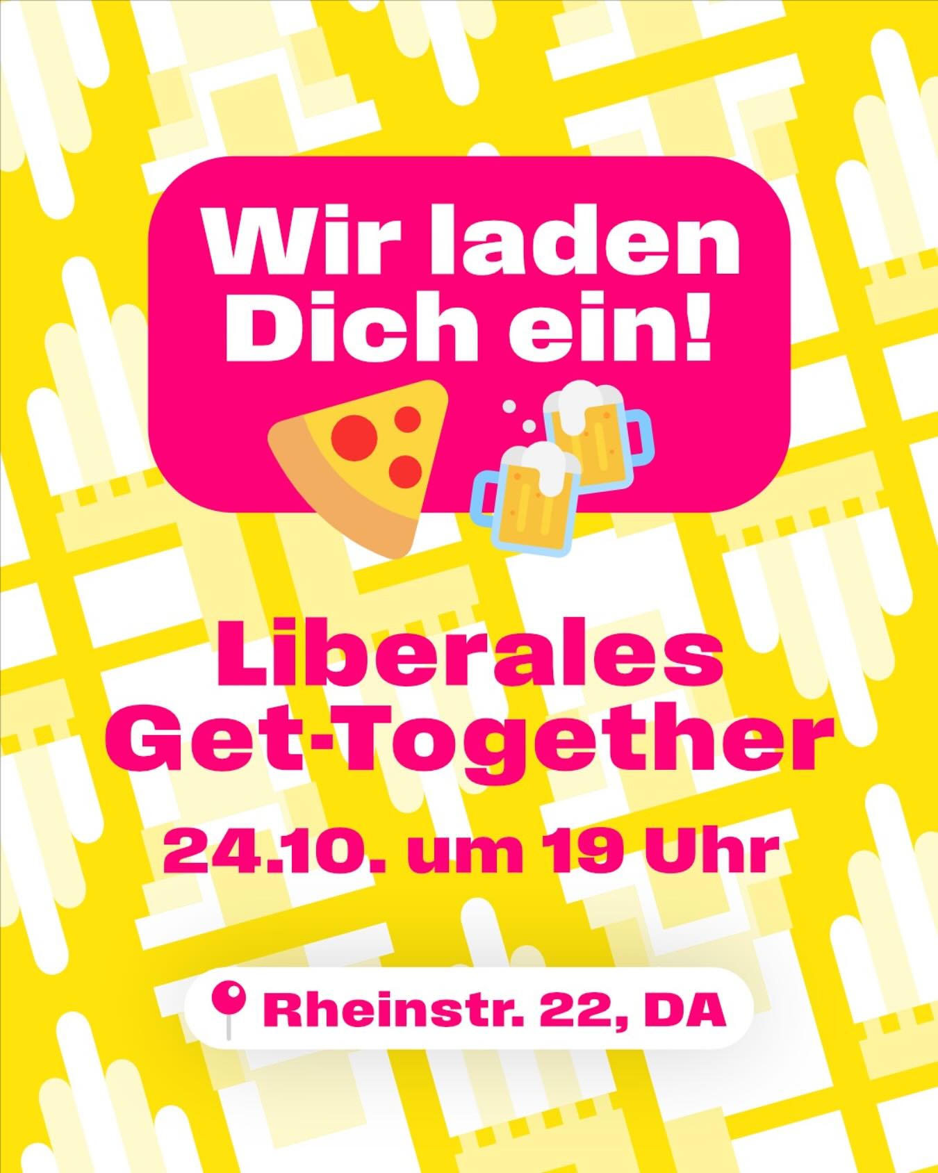 Komm am 24.10. um 19 Uhr zum Liberalen Get-Together und lerne die Darmstädter Liberalen kennen! Wir freuen uns auf spannende Gespräche und Deine Ideen. Außerdem gibt es wieder free Pizza und Getränke! 💛🍕🍸 #freiheit
