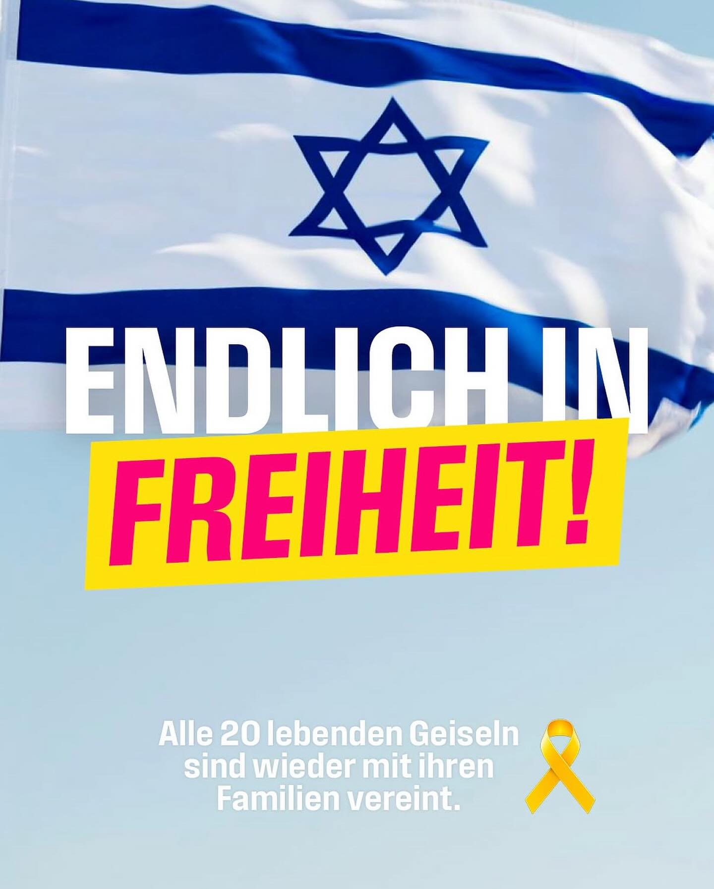 Alle lebenden Geiseln sind nach zwei Jahren in den Händen der Terrororganisation Hamas wieder zuhause und mit ihren Familien vereint.🎗️#israel
